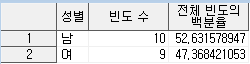 먼저 성별의 비율을 살펴본 후 결과 테이블을 저장하고,